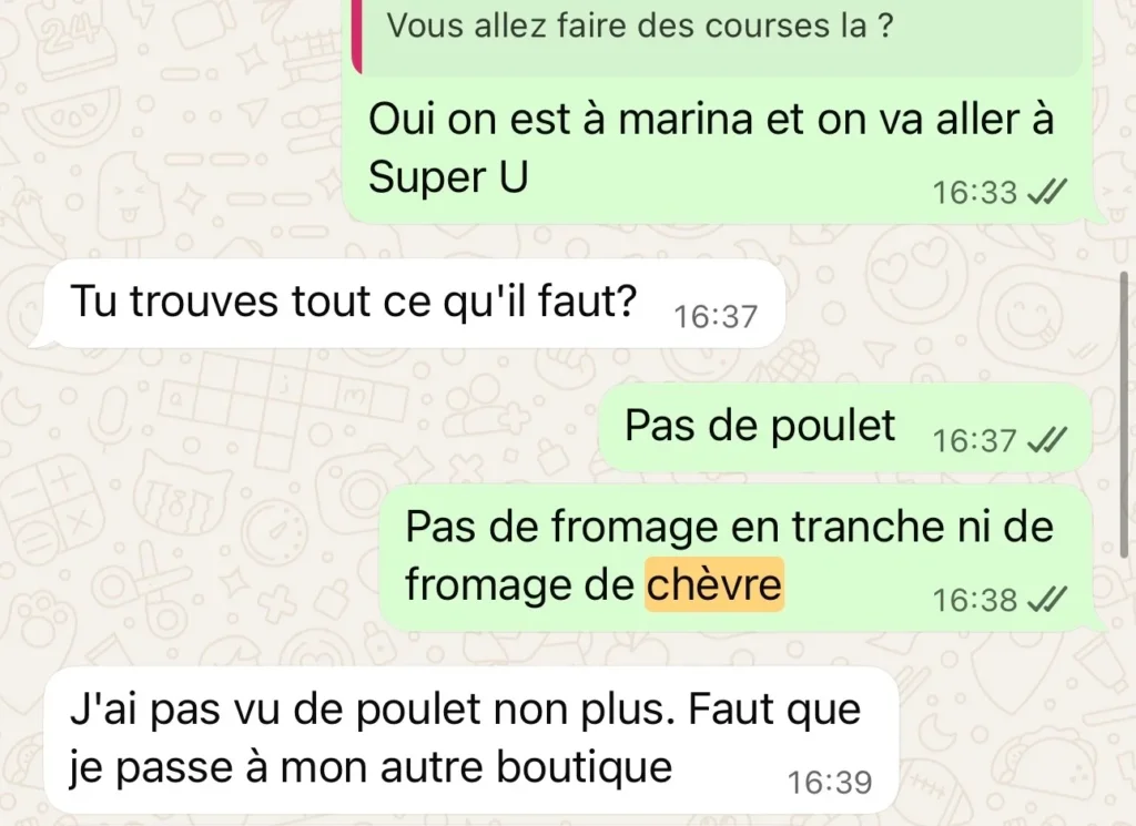 Sur l’image ci-contre, on s’envoie des messages entre amies pour s’informer des arrivages locaux. Eh oui, l’approvisionnement est parfois aléatoire dans certains pays.